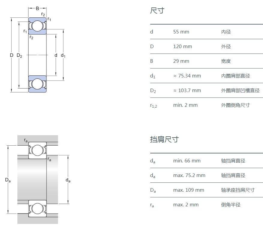 SIAIF不銹鋼深溝球軸承 S6311-2Z 詳細參數(shù)