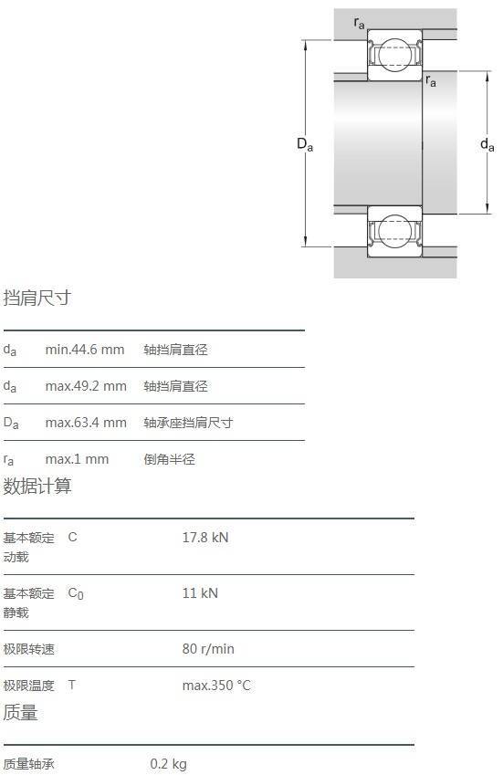 SIAIF耐高溫石墨自潤滑軸承 6010-2Z/VA208 詳細(xì)參數(shù)
