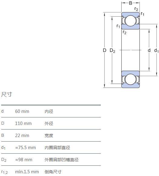 SIAIF耐高溫軸承 6212ZZ/VA201 詳細(xì)參數(shù)