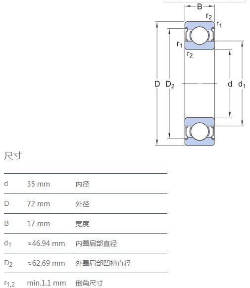 SIAIF耐高溫軸承 6207ZZ/VA201 詳細(xì)參數(shù)