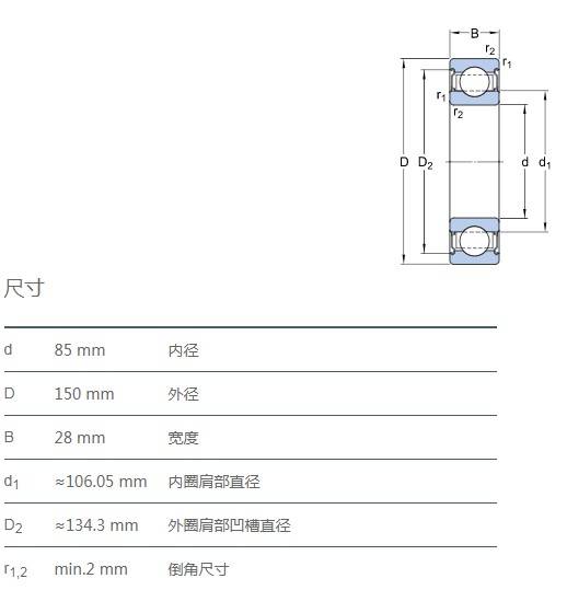 SIAIF耐高溫軸承 6217ZZ/VA208 詳細(xì)參數(shù)