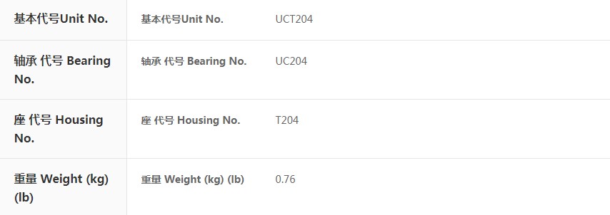 SIAIF滑塊帶座外球面軸承 UCT204 詳細參數(shù)
